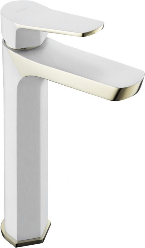 MEXEN – Vysoká umývadlová batéria Lerma, biela / zlato 74310-25