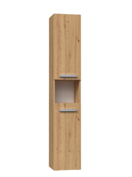 Skrinka do kúpeľne MIA I Vám poskytne dostatočný úložný priestor na všetky kúpeľnové doplnky. Je vyrobená z kvalitnej LTD dosky a hrany má chránené ABS páskou. Vo vnútri skrinky je nachádzajú praktické police. Úchyty sú plastové v striebornej farbe.Rozmery (ŠxVxH): 31 x 174 x 30 cm.Dodávame v demontovanom stave.