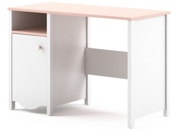 Detský písací stolík z atraktívneho detského sektoru MILA. V ľavej časti stolíka je k dispozícii praktická zásuvka, ako aj dvierková časť na uloženie potrebných školských a iných vecí.Stolík je vyrobený LTD dosky, ktorá je ľahká na údržbu. Ohraničená je ABS páskou. Na tomto sektore určite oceníte kombináciu bielej farby so sladkou ružovou, ktorá je vhodná nielen pre malé dievčatá, ale aj veľké slečny. Tento sektor má nádych provensálskeho štýlu aj vďaka ozdobným dolným lištám. Hodí sa tak do vidieckeho ako aj mestského interiéru. Úchytky sú okrúhle plastové.K stolu je možné dokúpiť aj policový nadstavec (viď. foto). Dodávané v demonte.