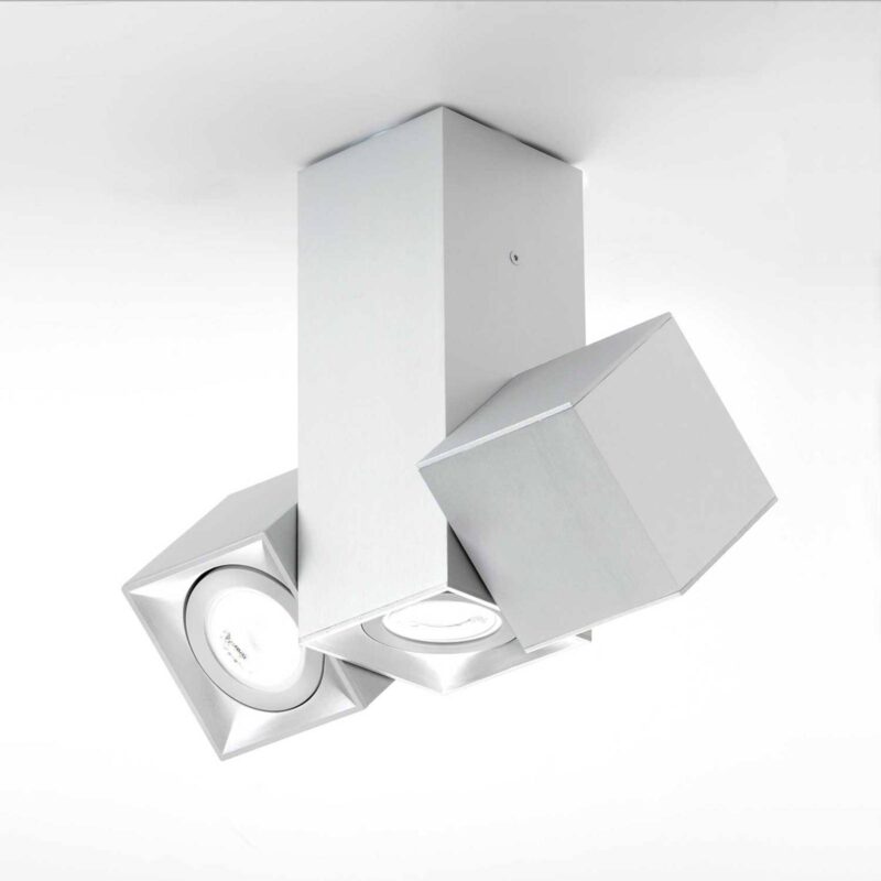 Pohyblivé stropné svietidlo Dau s tromi bodmi z hliníka Stropné svietidlo Dau Spot sa skladá z troch prvkov. Tuhá, podlhovastá škvrna v strede a dve škvrny v tvare kocky na ľavej a pravej strane. Svietidlo sa dá otáčať o 300°. Vonkajšie komponenty možno navyše otáčať o 300°. To umožňuje nasmerovať svetlo podľa potreby a zvýrazniť určité oblasti. Flexibilita, ktorú ponúka Dau, sa využíva nielen v súkromných obytných priestoroch, ale prednostne aj v komerčnom sektore. – vrátane adaptérového krúžku pre 50 mm svetelný zdroj