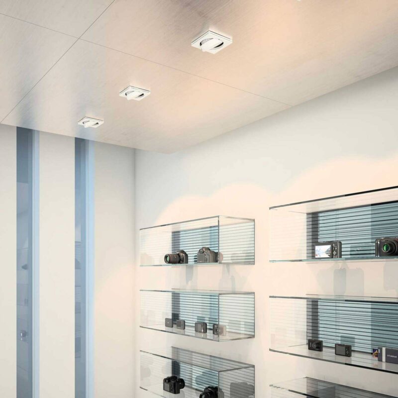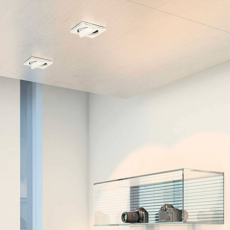 Štvorcové stropné svietidlo LED Marc 1 IN s nastaviteľným svetlomStropné svietidlo Marc 1 IN od španielskeho výrobcu Milan Iluminación je vhodné na osvetlenie teplých bielych plôch v moderných interiéroch. Biely štvorcový rám je osadený mierne pod stropom a pozostáva z okrúhlej hlavy, ktorú možno otočiť o 300° až 60° a v ktorej strede sa nachádza LED svetelný zdroj. Dobré podanie farieb zaručuje, že predmety sú vo svojom okolí zobrazené verne. Zapustené svietidlo sa dodáva bez potrebného napájacieho zdroja; prostredníctvom príslušenstva je k dispozícii vhodný ovládač, ktorý sa dá stmievať pomocou vypínania a zapínania fázy.