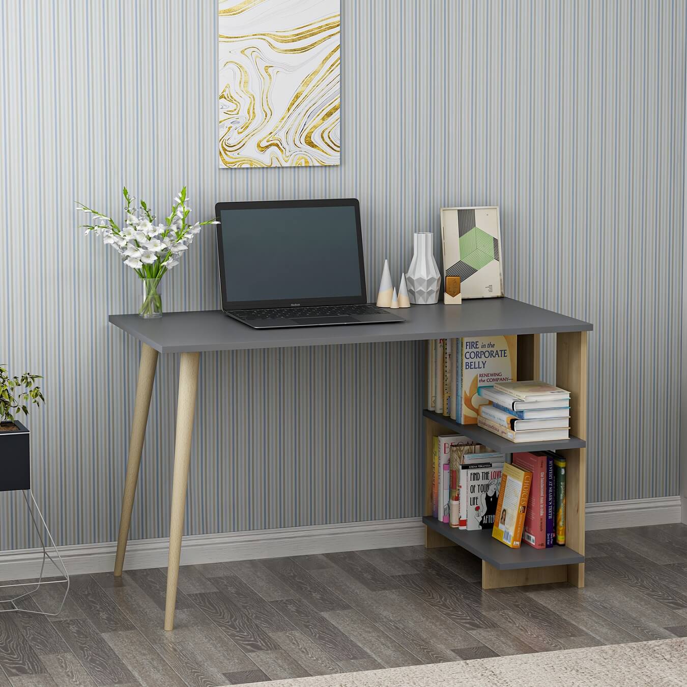 MILAN pracovný stôl, antracit / dub