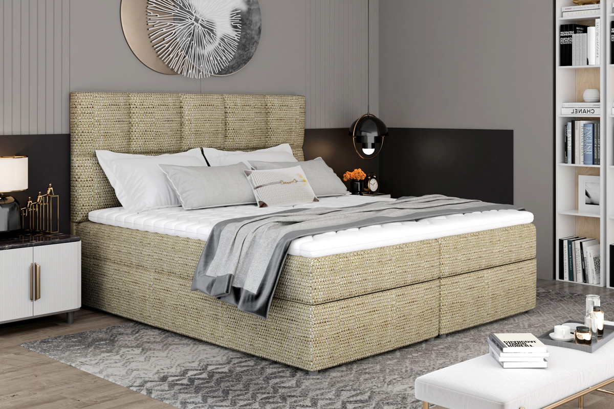 Exkluzívna a pohodlná manželská posteľ MILLY Vás hneď zaujme svojím módnym čelom. Jeho výška a jednoduchý tvar s prešívaním zabezpečí posteli elegantný a moderný vzhľad. Dokonale sa hodí do Vašej spálne, kde Vám poskytne miesto potrebné na relax a oddych.Posteľ MILLY má vysoký matrac, veľký čalúnený rám a úložný priestor. Konštrukcia postele je vyrobená v kombinácii dreva a LTD materiálu. Spacia plocha 145 x 200 poskytne dostatočne veľkú plochu pre odpočinok. Matrac má tvrdosť H3 a je tvorený kombináciou bonellových pružín a PUR peny s hustotou T25. Spolu s vrchným topperom zabezpečí pohodlnosť a uloženie Vašej chrbtice do správnej polohy. Je hypoalergénny. Posteľ je čalúnená veľmi príjemnou látkou Berlin 03.Rozmery:- šírka: 145 cm,- výška: 124 cm.- hĺbka: 210 cm.Výška matraca 15 cm, výška toppera 4 cm. Matrac a topper je v cene postele. V ponuke aj ďalšie farby čalúnenia.