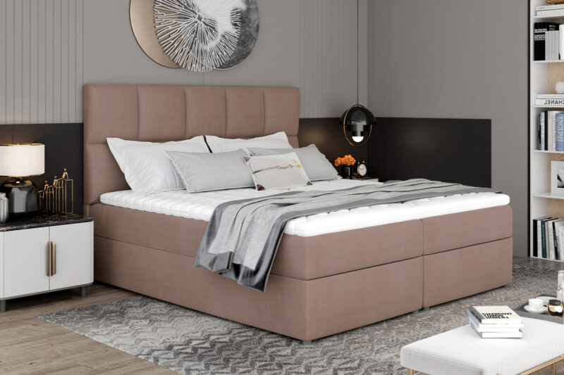 Exkluzívna a pohodlná manželská posteľ MILLY Vás hneď zaujme svojím módnym čelom. Jeho výška a jednoduchý tvar s prešívaním zabezpečí posteli elegantný a moderný vzhľad. Dokonale sa hodí do Vašej spálne, kde Vám poskytne miesto potrebné na relax a oddych.Posteľ MILLY má vysoký matrac, veľký čalúnený rám a úložný priestor. Konštrukcia postele je vyrobená v kombinácii dreva a LTD materiálu. Spacia plocha 145 x 200 poskytne dostatočne veľkú plochu pre odpočinok. Matrac má tvrdosť H3 a je tvorený kombináciou bonellových pružín a PUR peny s hustotou T25. Spolu s vrchným topperom zabezpečí pohodlnosť a uloženie Vašej chrbtice do správnej polohy. Je hypoalergénny. Posteľ je čalúnená veľmi príjemnou látkou Monolit 09.Rozmery:- šírka: 145 cm,- výška: 124 cm.- hĺbka: 210 cm.Výška matraca 15 cm, výška toppera 4 cm. Matrac a topper je v cene postele. V ponuke aj ďalšie farby čalúnenia.