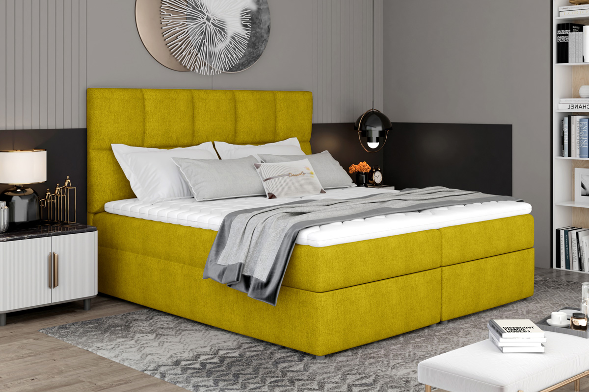 Exkluzívna a pohodlná manželská posteľ MILLY Vás hneď zaujme svojím módnym čelom. Jeho výška a jednoduchý tvar s prešívaním zabezpečí posteli elegantný a moderný vzhľad. Dokonale sa hodí do Vašej spálne, kde Vám poskytne miesto potrebné na relax a oddych.Posteľ MILLY má vysoký matrac, veľký čalúnený rám a úložný priestor. Konštrukcia postele je vyrobená v kombinácii dreva a LTD materiálu. Spacia plocha 145 x 200 poskytne dostatočne veľkú plochu pre odpočinok. Matrac má tvrdosť H3 a je tvorený kombináciou bonellových pružín a PUR peny s hustotou T25. Spolu s vrchným topperom zabezpečí pohodlnosť a uloženie Vašej chrbtice do správnej polohy. Je hypoalergénny. Posteľ je čalúnená veľmi príjemnou látkou Omega 68.Rozmery:- šírka: 145 cm,- výška: 124 cm.- hĺbka: 210 cm.Výška matraca 15 cm, výška toppera 4 cm. Matrac a topper je v cene postele. V ponuke aj ďalšie farby čalúnenia.
