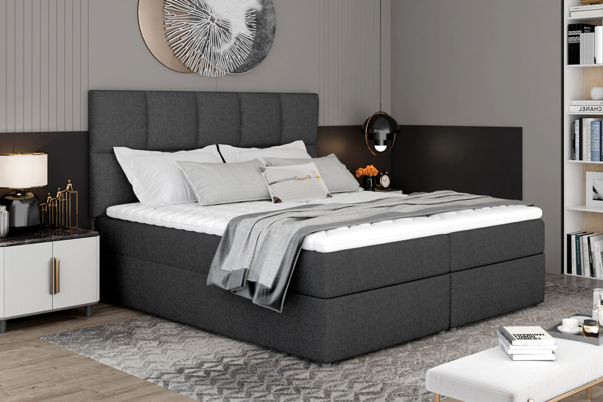 Exkluzívna a pohodlná manželská posteľ MILLY Vás hneď zaujme svojím módnym čelom. Jeho výška a jednoduchý tvar s prešívaním zabezpečí posteli elegantný a moderný vzhľad. Dokonale sa hodí do Vašej spálne, kde Vám poskytne miesto potrebné na relax a oddych.Posteľ MILLY má vysoký matrac, veľký čalúnený rám a úložný priestor. Konštrukcia postele je vyrobená v kombinácii dreva a LTD materiálu. Spacia plocha 165 x 200 poskytne dostatočne veľkú plochu pre odpočinok. Matrac má tvrdosť H3 a je tvorený kombináciou bonellových pružín a PUR peny s hustotou T25. Spolu s vrchným topperom zabezpečí pohodlnosť a uloženie Vašej chrbtice do správnej polohy. Je hypoalergénny. Posteľ je čalúnená veľmi príjemnou látkou Inari 96.Rozmery:- šírka: 165 cm,- výška: 124 cm.- hĺbka: 210 cm.Výška matraca 15 cm, výška toppera 4 cm. Matrac a topper je v cene postele. V ponuke aj ďalšie farby čalúnenia.