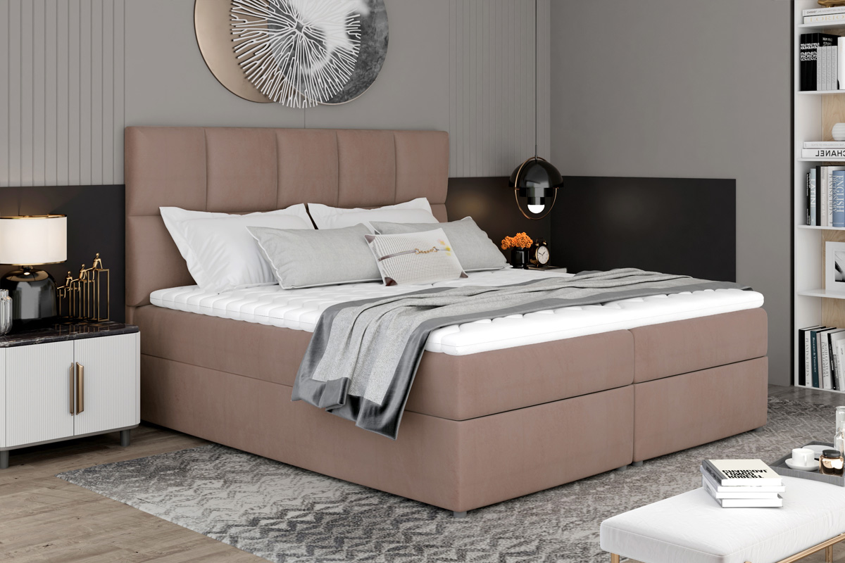 Exkluzívna a pohodlná manželská posteľ MILLY Vás hneď zaujme svojím módnym čelom. Jeho výška a jednoduchý tvar s prešívaním zabezpečí posteli elegantný a moderný vzhľad. Dokonale sa hodí do Vašej spálne, kde Vám poskytne miesto potrebné na relax a oddych.Posteľ MILLY má vysoký matrac, veľký čalúnený rám a úložný priestor. Konštrukcia postele je vyrobená v kombinácii dreva a LTD materiálu. Spacia plocha 165 x 200 poskytne dostatočne veľkú plochu pre odpočinok. Matrac má tvrdosť H3 a je tvorený kombináciou bonellových pružín a PUR peny s hustotou T25. Spolu s vrchným topperom zabezpečí pohodlnosť a uloženie Vašej chrbtice do správnej polohy. Je hypoalergénny. Posteľ je čalúnená veľmi príjemnou látkou Monolit 09.Rozmery:- šírka: 165 cm,- výška: 124 cm.- hĺbka: 210 cm.Výška matraca 15 cm, výška toppera 4 cm. Matrac a topper je v cene postele. V ponuke aj ďalšie farby čalúnenia.