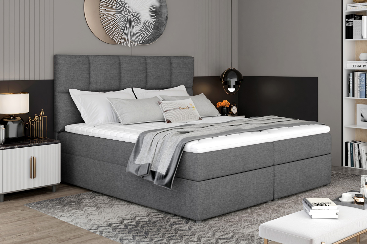 Exkluzívna a pohodlná manželská posteľ MILLY Vás hneď zaujme svojím módnym čelom. Jeho výška a jednoduchý tvar s prešívaním zabezpečí posteli elegantný a moderný vzhľad. Dokonale sa hodí do Vašej spálne, kde Vám poskytne miesto potrebné na relax a oddych.Posteľ MILLY má vysoký matrac, veľký čalúnený rám a úložný priestor. Konštrukcia postele je vyrobená v kombinácii dreva a LTD materiálu. Spacia plocha 165 x 200 poskytne dostatočne veľkú plochu pre odpočinok. Matrac má tvrdosť H3 a je tvorený kombináciou bonellových pružín a PUR peny s hustotou T25. Spolu s vrchným topperom zabezpečí pohodlnosť a uloženie Vašej chrbtice do správnej polohy. Je hypoalergénny. Posteľ je čalúnená veľmi príjemnou látkou Sawana 05.Rozmery:- šírka: 165 cm,- výška: 124 cm.- hĺbka: 210 cm.Výška matraca 15 cm, výška toppera 4 cm. Matrac a topper je v cene postele. V ponuke aj ďalšie farby čalúnenia.
