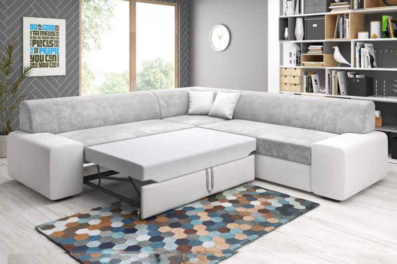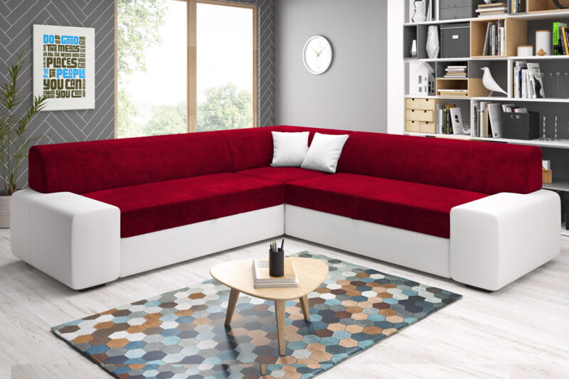 Rohová sedačka MONSO je štýlovou a dizajnovou sedačkou. Bude sa vynímať vo všetkých moderných interiéroch.Sedacia časť je vyplnená kvalitnými bonelovými pružinami, v kombinácii s PUR penou o hustote T-30. Sedačka je čalúnená kvalitnou ekokožou Madryt 120 a pevnou poťahovou látkou Monolith 59. Nožičky sú z dreva.Rozmery (š,v,h): 260 x 71 x 260 cm. Výška sedu: 42 cm. Hĺbka sedadla: 65 cm. Výška nožičiek: 5 cm.Sedačka disponuje praktickým úložným priestorom, ktorý je vhodný na uloženie bielizne, perín a podobne. Môžete ju tiež rozložiť. Spacia plocha po rozložení: 135 x 195 cm. Je vhodná na príležitostné spanie.V ponuke nájdete sedačky MONSO aj v ďalších farebných prevedeniach.Dodávame v demontovanom stave.
