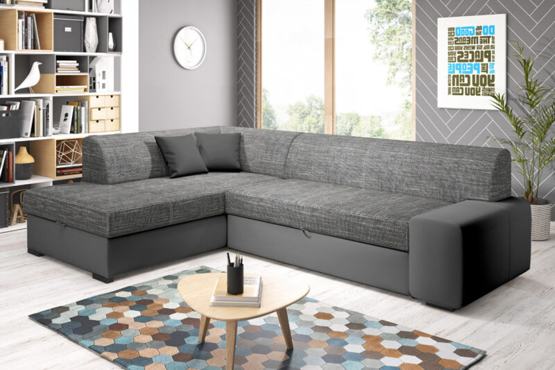 Rohová sedačka MINES ponúka moderné dizajnové prevedenie. Rovné línie sú prepojené s oblými tvarmy bočnice a opierok. V spojení s jemným prešívaním dodávajú sedačke šmrnc a eleganciu.Súčasťou sedačky je pracktický úložný priestor, ku ktorému sa jednoducho dostanete vďaka výklopnému UP systému. Funkcia rozkladu poskytne ložnú plochu s rozmerom 195 x 135 cm, ktorá je vhodná na príležitnostné spanie. Sedák je tvorený vlnovcovou pružinou a PUR penou. Táto kombinácia zabezpečí pohodlné sedenie i leňošenie. Na čalúnenie bola použitá kombinácia látky a eko-kože (v spodnej časti). Prevedenie: Berlin 01/Madryt 1100.Rozmery sedačky  (š/v/h): 260 x 71 x 175 cm. Hĺbka sedu 63cm. Výška sedu 42 cm. Prevedenie rohu sedačky je ľavé. V našej ponuke nájdete aj sedačku s pravým rohom a množstvo ďalších farebných prevedení. 2 malé vankúšiky sú v cene sedačky.Sedačka je vhodná do moderného interiéru, kde vytvorí výnimočné zátišie pre chvíle oddychu a relaxu.