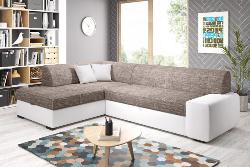 Rohová sedačka MINES ponúka moderné dizajnové prevedenie. Rovné línie sú prepojené s oblými tvarmy bočnice a opierok. V spojení s jemným prešívaním dodávajú sedačke šmrnc a eleganciu.Súčasťou sedačky je pracktický úložný priestor, ku ktorému sa jednoducho dostanete vďaka výklopnému UP systému. Funkcia rozkladu poskytne ložnú plochu s rozmerom 195 x 135 cm, ktorá je vhodná na príležitnostné spanie. Sedák je tvorený vlnovcovou pružinou a PUR penou. Táto kombinácia zabezpečí pohodlné sedenie i leňošenie. Na čalúnenie bola použitá kombinácia látky a eko-kože (v spodnej časti). Prevedenie: Berlin 03/Madryt 120.Rozmery sedačky (š/v/h): 260 x 71 x 175 cm. Hĺbka sedu 63cm. Výška sedu 42 cm. Prevedenie rohu sedačky je ľavé. V našej ponuke nájdete aj sedačku s pravým rohom a množstvo ďalších farebných prevedení. 2 malé vankúšiky sú v cene sedačky.Sedačka je vhodná do moderného interiéru, kde vytvorí výnimočné zátišie pre chvíle oddychu a relaxu.