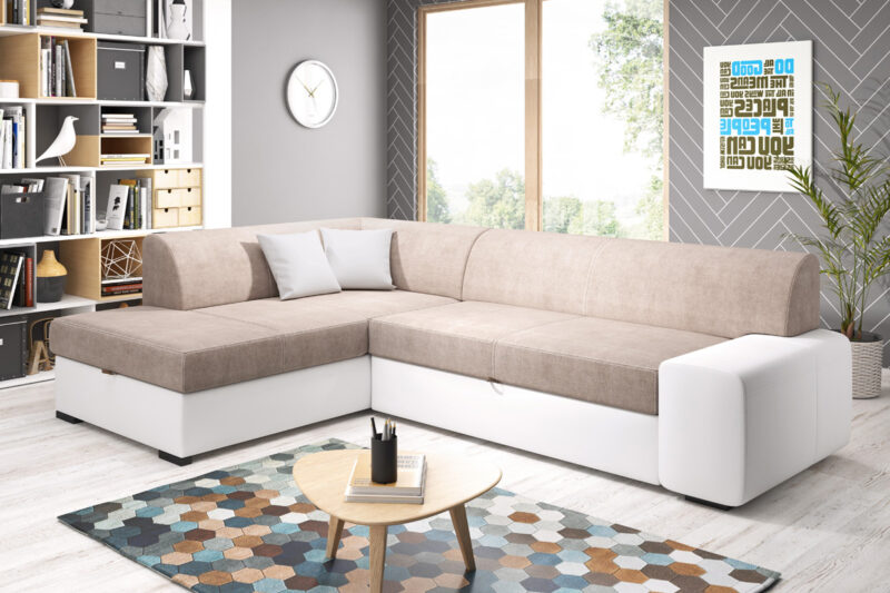 Rohová sedačka MINES ponúka moderné dizajnové prevedenie. Rovné línie sú prepojené s oblými tvarmy bočnice a opierok. V spojení s jemným prešívaním dodávajú sedačke šmrnc a eleganciu.Súčasťou sedačky je pracktický úložný priestor, ku ktorému sa jednoducho dostanete vďaka výklopnému UP systému. Funkcia rozkladu poskytne ložnú plochu s rozmerom 195 x 135 cm, ktorá je vhodná na príležitnostné spanie. Sedák je tvorený vlnovcovou pružinou a PUR penou. Táto kombinácia zabezpečí pohodlné sedenie i leňošenie. Na čalúnenie bola použitá kombinácia látky a eko-kože (v spodnej časti). Prevedenie: Orinoco 22/Madryt 120.Rozmery sedačky  (š/v/h): 260 x 71 x 175 cm. Hĺbka sedu 63cm. Výška sedu 42 cm. Prevedenie rohu sedačky je ľavé. V našej ponuke nájdete aj sedačku s pravým rohom a množstvo ďalších farebných prevedení. 2 malé vankúšiky sú v cene sedačky.Sedačka je vhodná do moderného interiéru, kde vytvorí výnimočné zátišie pre chvíle oddychu a relaxu.