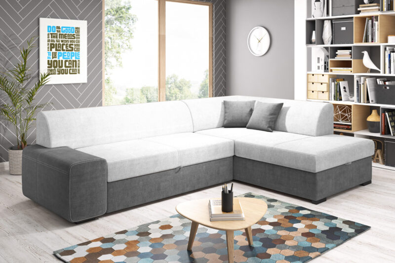 Rohová sedačka MINES ponúka moderné dizajnové prevedenie. Rovné línie sú prepojené s oblými tvarmy bočnice a opierok. V spojení s jemným prešívaním dodávajú sedačke šmrnc a eleganciu.Súčasťou sedačky je pracktický úložný priestor, ku ktorému sa jednoducho dostanete vďaka výklopnému UP systému. Funkcia rozkladu poskytne ložnú plochu s rozmerom 195 x 135 cm, ktorá je vhodná na príležitnostné spanie. Sedák je tvorený vlnovcovou pružinou a PUR penou. Táto kombinácia zabezpečí pohodlné sedenie i leňošenie. Na čalúnenie bola použitá kombinácia látok: Orinoco 90/Orinoco 96 (spodná časť).Rozmery sedačky  (š/v/h): 260 x 71 x 175 cm. Hĺbka sedu 63cm. Výška sedu 42 cm. Prevedenie rohu sedačky je pravé. V našej ponuke nájdete aj sedačku s ľavým rohom a množstvo ďalších farebných prevedení. 2 malé vankúšiky sú v cene sedačky.  Sedačka je vhodná do moderného interiéru, kde vytvorí výnimočné zátišie pre chvíle oddychu a relaxu.