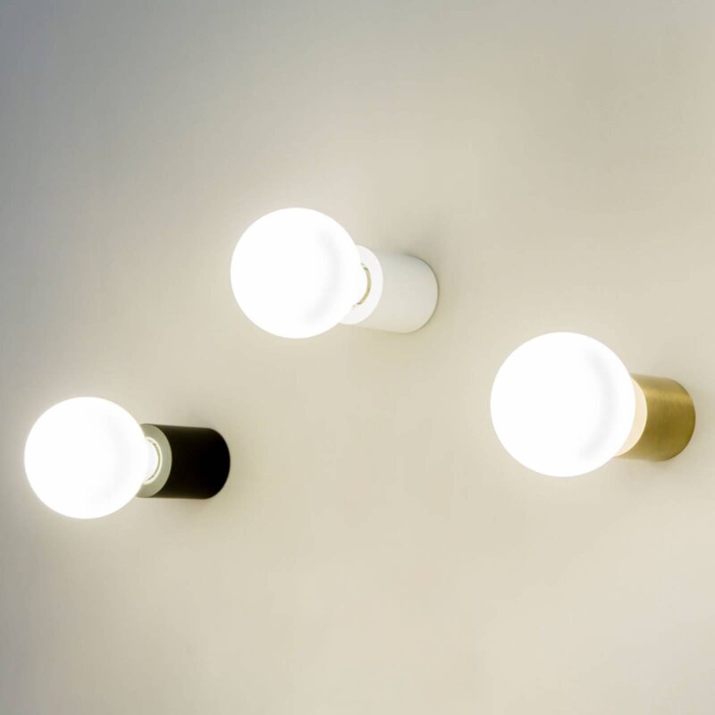 Minimalistické nástenné svietidlo Desať Jednoduchá kovová objímka, do ktorej je vložená žiarovka s objímkou E27 – to je nástenné svietidlo Ten, ktoré je možné opticky zmeniť výberom žiarovky. Rovnako ako na fotografii je možné použiť žiarovku s čírym sklom, ale možné sú aj žiarovky LED so saténovým povrchom alebo žiarovky v iných tvaroch (pozri príslušenstvo). Svietidlo je možné použiť aj ako stropné svietidlo v malých miestnostiach alebo v prípade, že je ich niekoľko nainštalovaných.