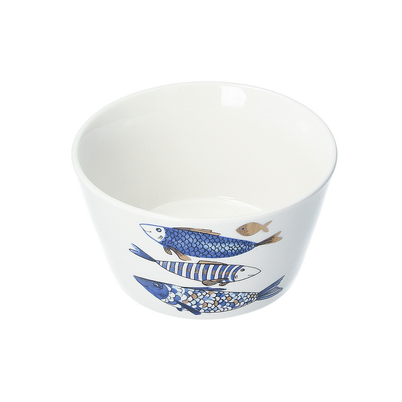 Porcelánová raňajková miska s modrou a zlatou rybou. Objemná miska zdobená rybami dodá vašej jedálni námornícky nádych!