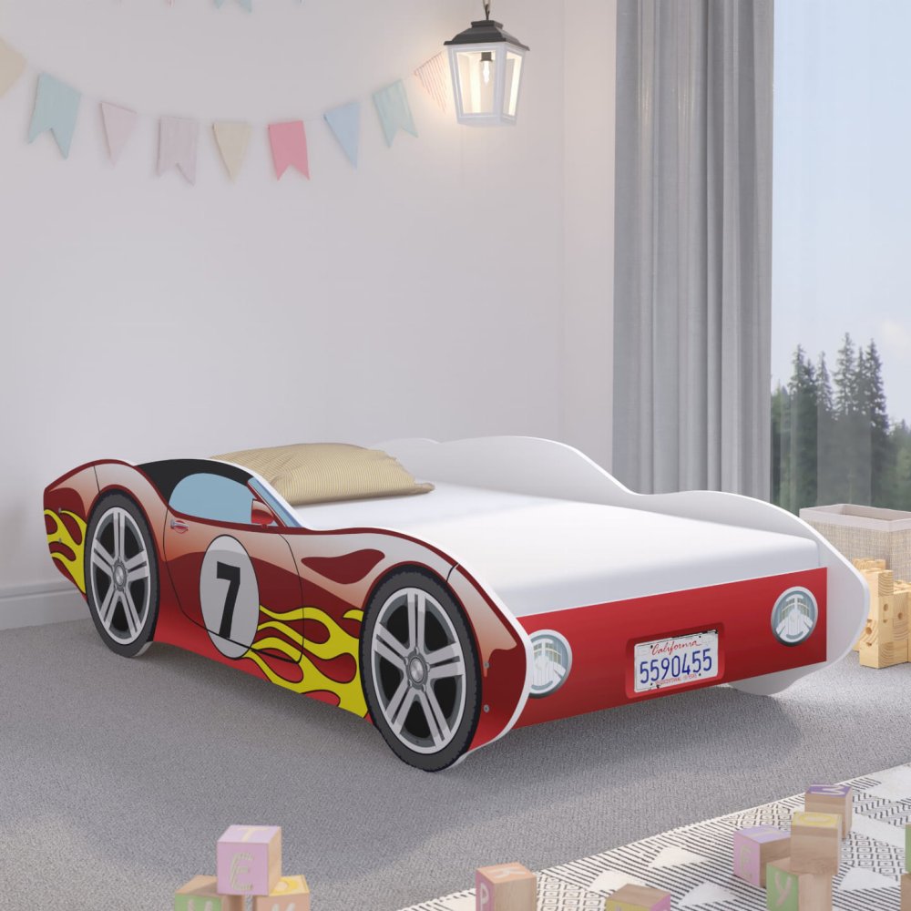 Posteľ v tvare auta s krásne odrazenými detailmi.
