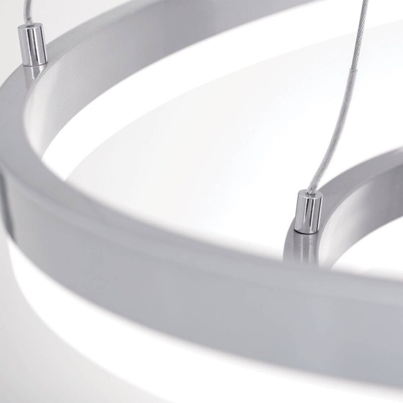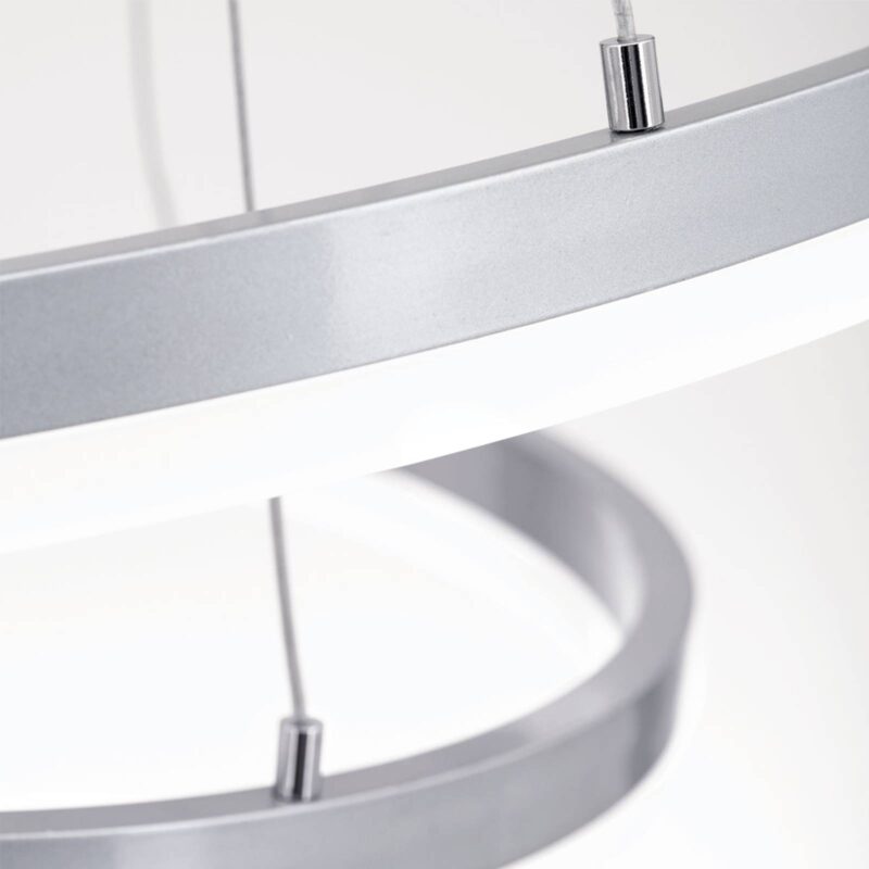 Inovatívne navrhnuté LED závesné svietidlo Float LED závesné svietidlo Float pôsobí ako súčasný a zároveň aj energeticky úsporný zdroj svetla a v spojení s moderne zariadeným interiérom predstavuje aj štýlový bytový doplnok. Za akrylovými clonami oboch tienidiel sú vstavané LED svetelné pásiky. Keď vyžarujú svetlo príjemnej teplej bielej farby, zabezpečuje LED závesné svietidlo Float pohodlné celkové osvetlenie okolia. Výška oboch prstencov sa dá nastavovať len pri inštalácii. – stmievateľné cez domový vypínač