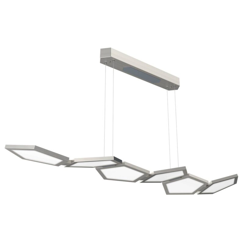 LED závesné svetlo Poly so šiestimi LED prvkami V LED závesnom svetle Poly je za sebou zabudovaných šesť voštinových LED prvkov, ktorých svetlo je distribuované difúzorom z opálového jednovrstvového bezpečnostného skla tak, aby neoslňovalo a namiesto toho bolo rovnomerne rozložené v miestnosti. a spolu vedú k podlhovastému zavesenému svetlu. To je obzvlášť vhodné na osvetlenie podlhovastého stola, napr. B. v obývacej izbe alebo v jedálni. To však neznamená, že za jedlo dostanete len to správne svetlo – napr. B. útulné teplé biele svetlo – nie, môžete tiež nastaviť LED diódy na namodralé farba svetla pomocou diaľkového ovládača na ovládanie farieb (je súčasťou dodávky), aby ste sa mohli sústrediť na svoju prácu. Celkovo možno pomocou diaľkového ovládania LED plynule nastavovať od 2 700 K do 6 500 K. Diaľkový ovládač má tiež funkciu stmievania.
