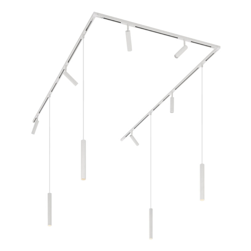 Moderný koľajnicový systém s 6 bodovými svetlami a 4 závesnými svetlami biely 1-fázový – Slimline Uzzy Keno