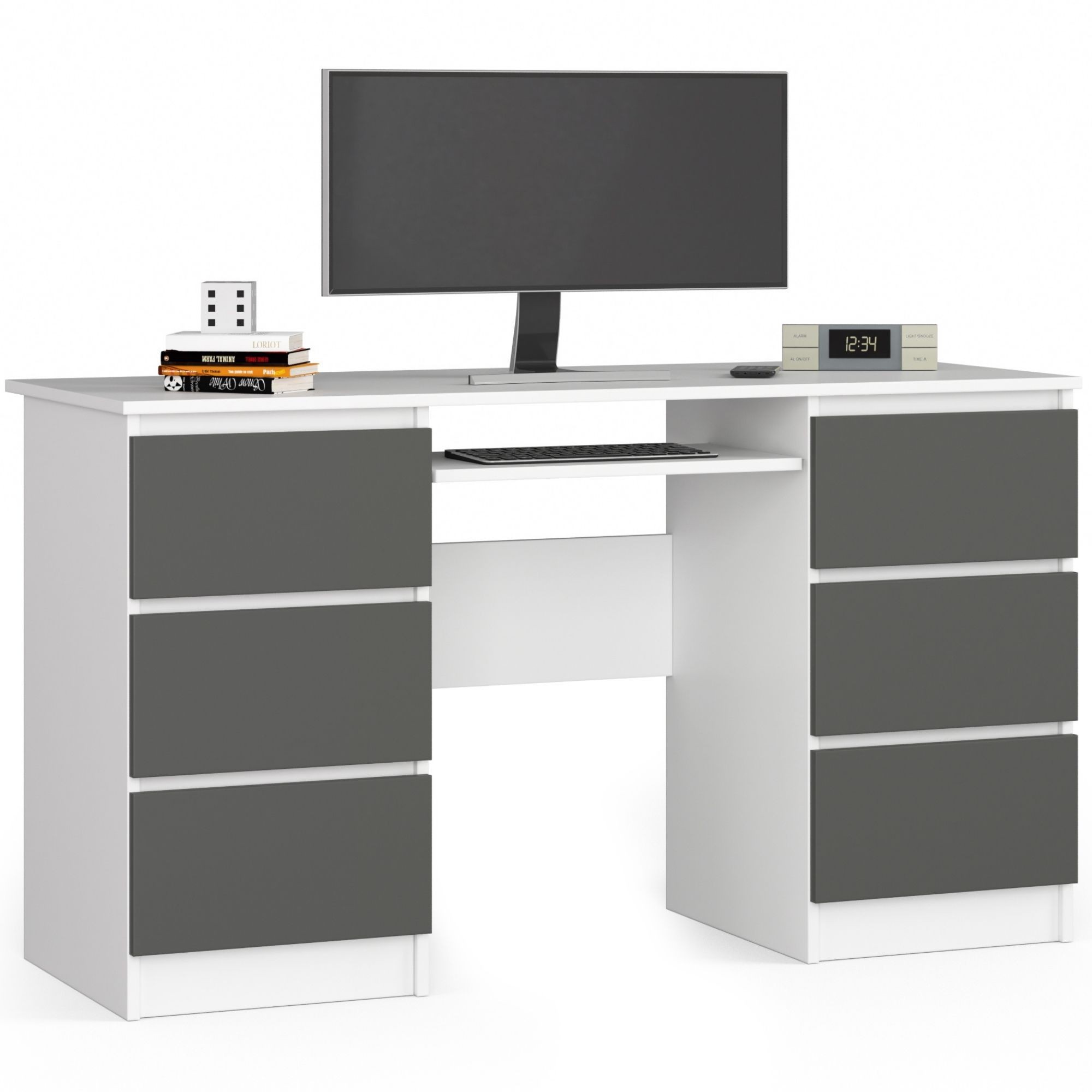 JURÍ135: Dizajnový Písací stôl pre moderný interiér Objavte kúzlo JIRÍ135, písacieho stola s moderným vzhľadom, ideálnym pre detskú izbu, kanceláriu alebo pracovňu. Toto nábytkové skvost prináša spojenie funkčnosti a dizajnu. Materiál: Vysoko kvalitné LTD Rozmer: 77 x 135 x 50 cm Farba: Elegantná kombinácia bielej a grafity Vybavenie: Šesť užitočných zásuviek a špeciálna výsuvná doska pre klávesnicu< /li> Stôl JURÍ135 nie je iba nábytkom. S jeho moderným a dizajnovým vzhľadom okamžite oživí akýkoľvek priestor. Vyberte si kvalitu a štýl v jednom balení!