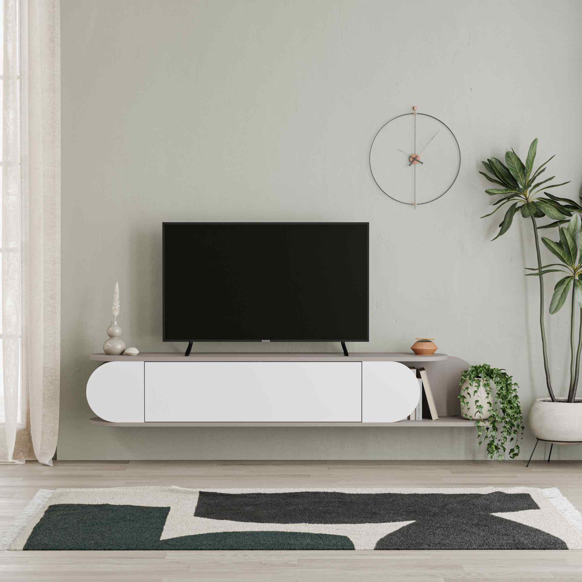TV Stolík MELGA: Elegancia svetlá mocca pre vašu obývaciu izbu Zamýšľate sa nad kúpou nového TV stolíka pre vašu obývačku? Potom nenechajte ujsť MELGA. Jeho moderný dizajn vo svetle moka odtieňa prináša jedinečný vzhľad a funkčnosť do vášho domova. Materiál: Vybraný melamín a VT laminát, ktorý zaisťuje dlhú odolnosť a minimálnu údržbu.< /li> Rozmery: 30 x 180 x 29.6 cm – ideálny pre rôzne veľkosti televízií a doplnkov. Farba: Výnimočná kombinácia svetlá mocca a biele, čo dodáva stolíku výrazný a elegantný vzhľad. Funkcia: Intuitívne push to open systém pre jednoduché otváranie. Vybavenie: Výklopné priehradky, poskytujúce množstvo úložného priestoru. Tvar: Klasický obdĺžnikový a rovný dizajn, dokonale zapadne do každého moderného interiéru. Hrúbka materiálu: 18mm pre solídnu a stabilnú konštrukciu. TV stolík MELGA je nielen praktickým riešením pre váš televízor, ale tiež dizajnovým kúskom, ktorý upúta pozornosť a oživí atmosféru vašej obývačky.