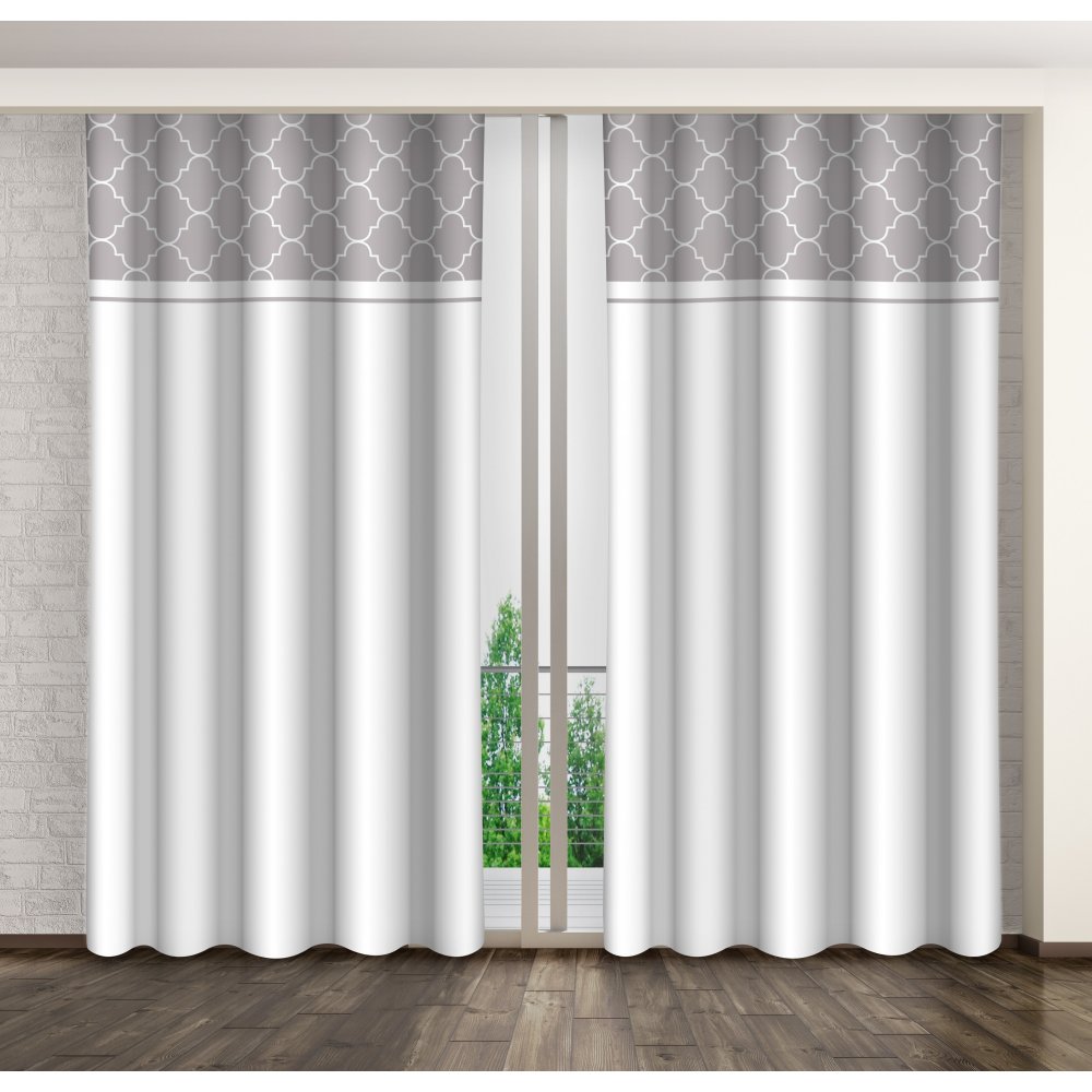 Moderný vzorovaný záves bielej farby na štipce Dĺžka: 250 cm
