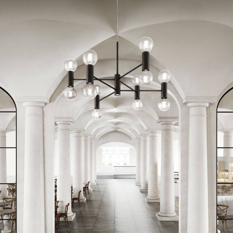 Moderná verzia klasického lustra – prívesková lampa Lustr Dizajnové závesné svietidlo Chandelier je pokusom o novú a modernú interpretáciu pôvodného tvaru benátskeho lustra a jeho sprístupnením pre štýlové obytné priestory súčasnosti. Minimalistické tvary a jasné čiary vytvárajú celkový harmonický obraz s celkovo trinástimi zdrojmi svetla, ktoré zaisťujú jasné osvetlenie aj veľkých miestností. Zo Basis v stredu, tuhá ramená prebiehať vodorovne na všetkých stranách. Na nich sú namontované úzke, valcovité konzoly, ktorých otvory smerujú nahor a nadol. Zásuvky E27 sú skryté v otvoroch. Zarovnanie generuje priame aj nepriame svetlo. Na Basis je umiestnená žiarovka GU10 smerujúca nadol, ktorá vyžaruje bodový svetelný lúč smerujúci priamo nadol. Vďaka jednotnej farebnej schéme je možné Luster ľahko integrovať do mnohých koncepcií interiérového dizajnu. Talianski výrobcovia dizajnérskeho osvetlenia spoločnosti Modo Luce pracujú s inovatívnymi materiálmi, vďaka ktorým uvedú do života všestranné, funkčné a príťažlivé riešenia osvetlenia. Ich víziou je poskytnúť každej miestnosti správne svetlo v správnej forme.