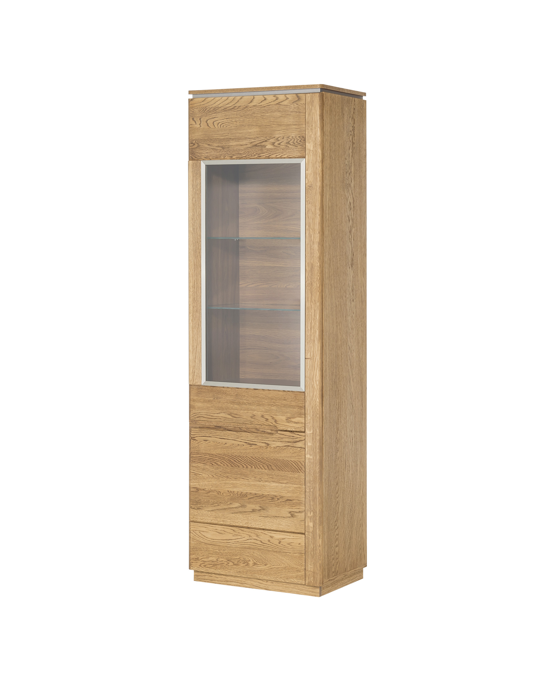 Moderná vysoká vitrína MONASTERY Vám zaručí kvalitné spracovanie a moderný dizajn. Dvierka nábytku sú vyrobené z pravého masívneho lešteného dreva. Sklo vo vitrínach je ohraničené matným hlinikovým rámom. Zadná časť nábytku je vyrobená z prírodnej dubovej dýhy, vnútro je štandardne vyrobené z kvalitnej LTD dosky, ktorá je potiahnutá odolnou fóliou. Povrch nábytku je natretý ochranným ekologickým lakom.K vitríne je možné zakúpenie LED osvetlenia (viď. Doporučené produkty). K zostave je možné dokúpenie ďalších elementov z toho istého sektoru, čím si môžete zostaviť obývačku alebo jedálňu podľa svojich predstáv a potrieb.Dodávame v demontovanom stave.
