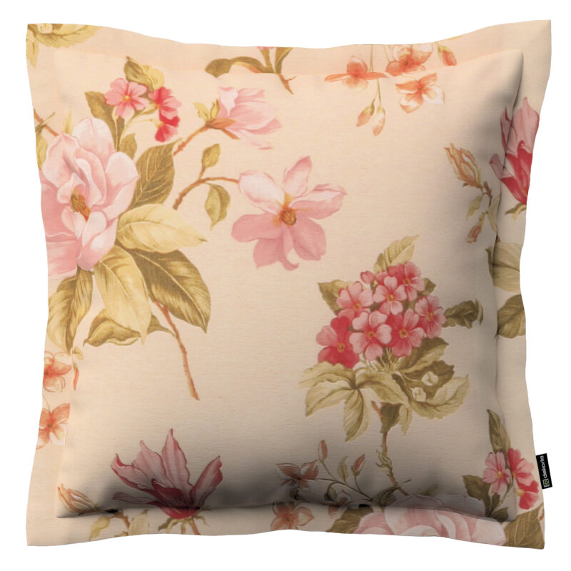 Monika s lemom, výrazný vzor ružovozelené kvety na ľanovom podklade , 45 x 45 cm, Londres, 143-87