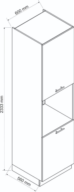 Kuchynský nábytok MOON bol vytvorený pre milovníkom minimalistických kuchýň. Je v jednoduchom a nadčasovom dizajne. Jej predné časti sú charakteristické ako anti-fingerprint – ochrana nábytku proti odtlačkom prstov. Korpus nábytku je vyrobený zo 16 mm hrubej LTD dosky. Predné dvierka sú vyrobené z akrylovej matnej dosky s hrúbkou 18,7 mm. Dolná kuchynská skrinka je v čiernej farbe v matnom prevedení. Rozmery (š,v,h): 60 x 233,3 x 56 cm.Súčasťou je sokel v šedej farbe a nožičky.Úchyty nie sú v cene. Je potrebné ich doobjednať.Dodávame v demontovanom stave.