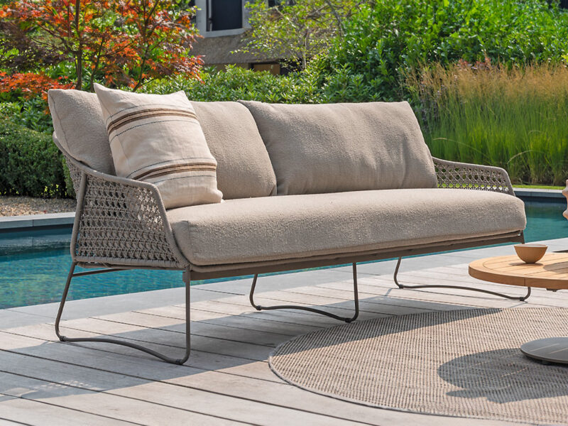 Elegantná Moretti 3-sedačka s nadčasovým dizajnom, jemným výpletom a luxusnými bouclé vankúšmi vám poskytne maximálny komfort pre spoločné chvíle na terase.