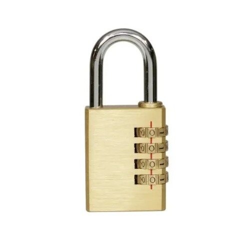 Mosadzný kódový visiaci zámok. Nastavenie vlastnej kombinácie, ktorú môžete kedykoľvek zmeniť. 10.000 kombinácií zámku. Hmotnosť netto: 0,20 kg.