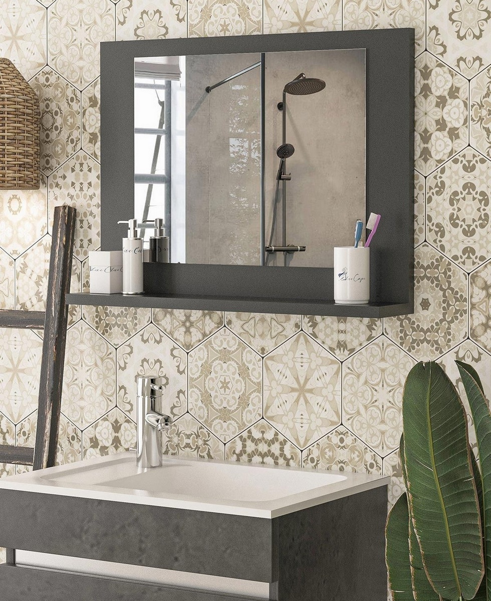 Praktická polička MOSLY so zrkadlom je vhodná aj do menších interiérov, vhodná do kúpeľne.Je vyrobená z kvalitných LTD dosiek, o hrúbke 18 mm. Zrkadlo je možné použiť horizontálne aj vertikálne. Farba: antracit.Celkové rozmeryŠírka 60 cm.Výška 45 cmHĺbka 2,2 cm.Rozmery zrkadla;Šírka 45 cm.Výška 35 cm.Rozmery police;Šírka 60 cm.Hĺbka 10 cm.Dodávame v demontovanom stave.