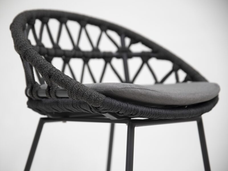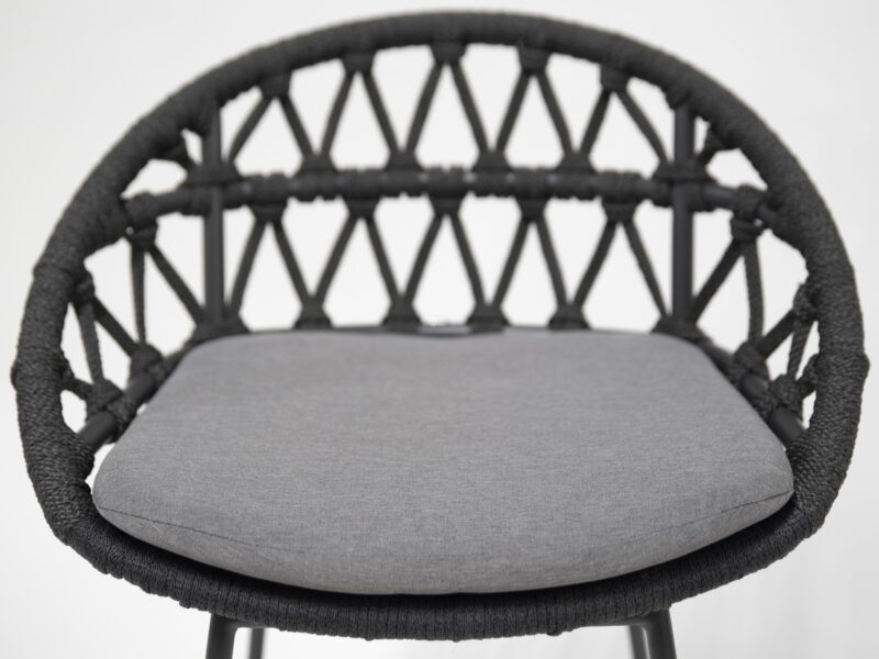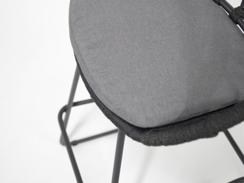 Štýlovú barovú stoličku v atraktívnej sivej farbe ľahko zladíte s obľúbeným stolíkom na vašej záhrade.