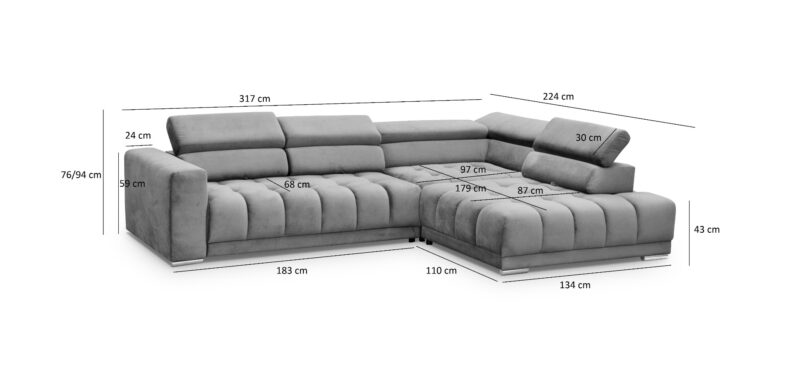 Očakávate od rohovej sedačky vo svojej obývačke maximálny komfort? Poobzerajte sa po rohovej sedačke MOTO s polohovateľnými opierkami hlavy a operadla. Sedačka MOTO s rozmermi 317 x 224 cm zaručí relax na vyššej úrovni ako bežné sedačky.Precízne prešívanie sedadla, elegantný tvar a nohy zaručia moderný dizajn vo vašej obývačke. Sedačka je vybavená polohovateľnými opierkami hlavy a chrbtovou opierkou, čo znamená, že bez ohľadu na to, kto tento nábytok používa, prispôsobí si hĺbku sedenia a výšku operadla svojim potrebám.Rohová sedačka MOTO v poťahovej látke BLUVEL 14 v ľavom prevedení je vyrobená z vysoko elastickej peny T30 a vlnitej pružiny. Pena zaručuje väčšiu pružnosť a vyznačuje sa dlhšou životnosťou. Vaša rohová sedačka MOTO tak bude po rokoch rovnako pohodlná ako v deň kúpy.Poťahová látka BLUVEL je vyrobená za 100% polyesteru. Jemná štruktúra, mäkkosť a mierny lesk dokonale charakterizujú tkaninu BlUVEL. Tkanina je veľmi odolná a pevná, odolná voči oderu a žmolkovaniu.Výbava rohovej sedačky MOTO:Pevný drevený rámOdolná vlnová pružinaFlexibilná polyuretánová pena T30Plastové nožičkyNastaviteľné opierky hlavyNastaviteľná chrbtová opierkaZadná časť čalúnená látkouRohová sedačka je dodaná v balení o rozmeroch:143 x 73 x 114 cm – 58,4kg141 x 76 x 113 cm – 63kg115 x 73 x 194 cm – 90kgDodávame v demonte.Farebné prevedenie sa môže líšiť v závislosti od nastavenia Vášho monitora. Odporúčame sa riadiť vzorkovníkom.