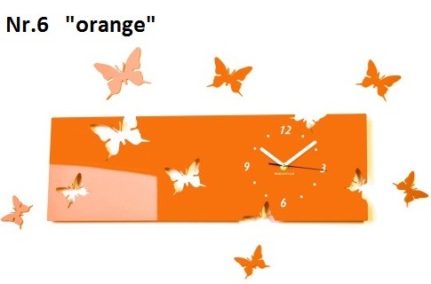 Motýle nástenné hodiny z akrylového skla oranžová