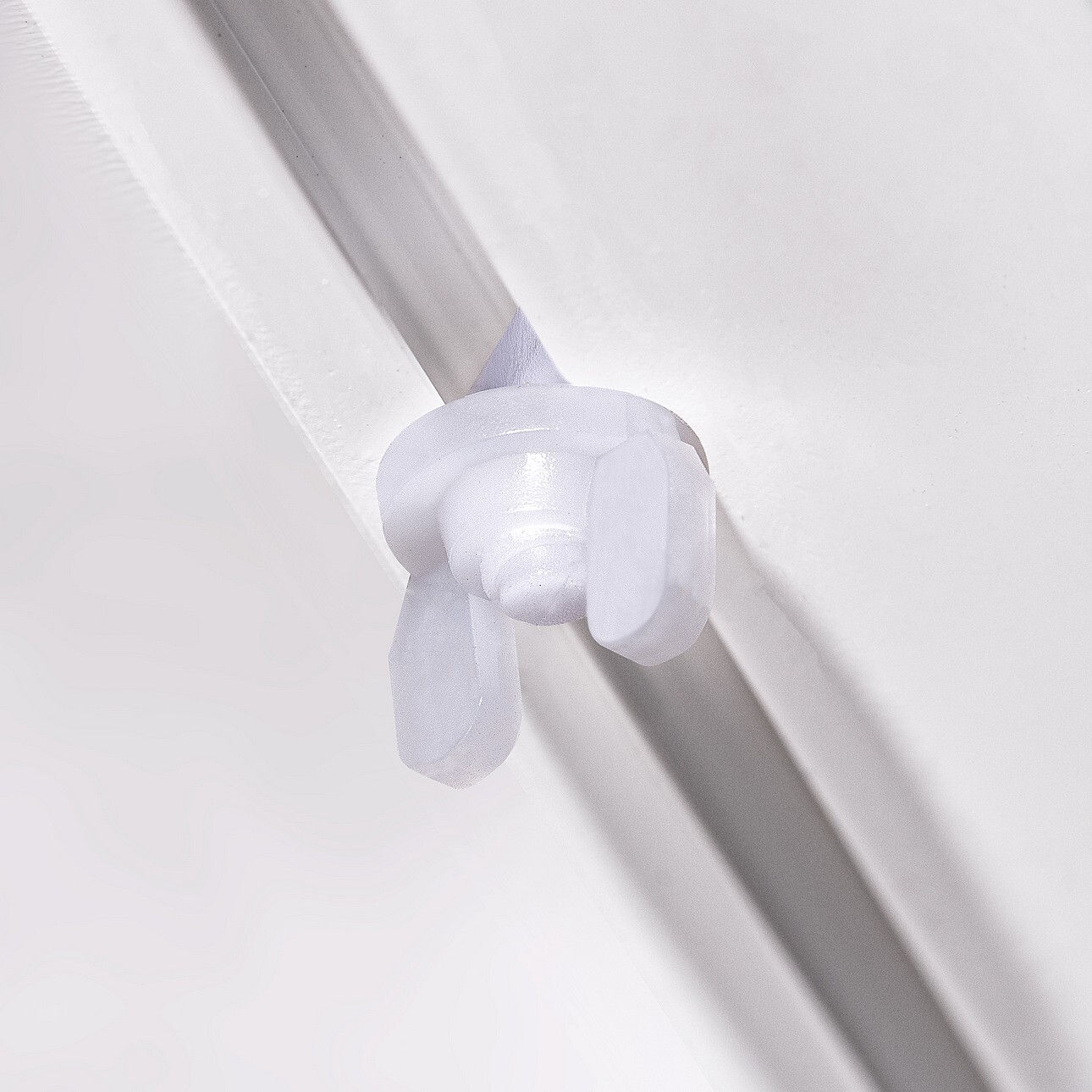 Motýliková blokáda na stropné koľajnice.Ide o prvok zaisťujúci presúvanie žabiek a spínacích špendlíkov a ich vypadávanie z dráhy koľajnice.Montáž blokády možno vykonať na ľubovoľnom mieste koľajnice.Vyrobená z plastu.Materiál: plast.Farba: bezfarebná.Rozmery: šír. 1,5 cm, výš. 1,5 cm.Údaje o výrobku:Veľkosť: 1,5 x 1,5 cmSystém koľajníc: plast PVC