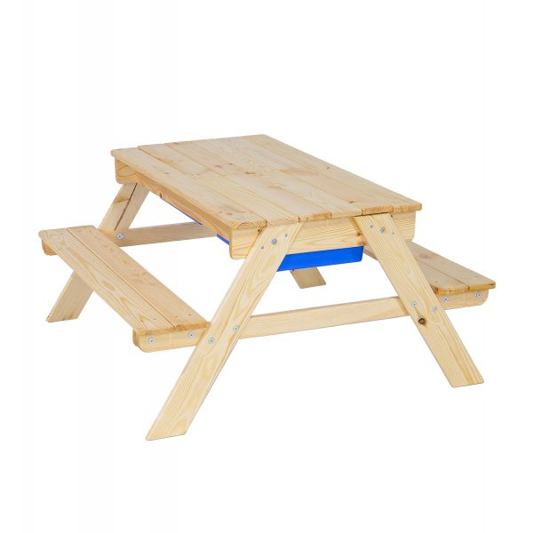 Detský záhradný set je výborným doplnkom do exteriéru, na vašu chatu či záhradu. Je v modernom a štýlovom prevedení. Zaujme milovníkov prírodných materiálov a poteší vaše ratolesti.Set je vyrobený z kvalitného smrekového dreva. Farebné prevedenie: prírodný smrek. Drevo je odolné voči poveternostným podmienkam. Rozmery setu (š,v,h): 94 x 50 x 94 cm.