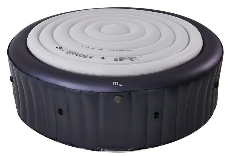 nafukovacia mobilná vírivka MSPA Carlton, kryt vírivky, nafukovací kryt, termoizolačná podložka, adaptér na záhradnú hadicu, hadica na nafukovanie, filtračná kazeta 2 ks, základňa filtračnej kazety, dávkovač chemikálií, kľúč