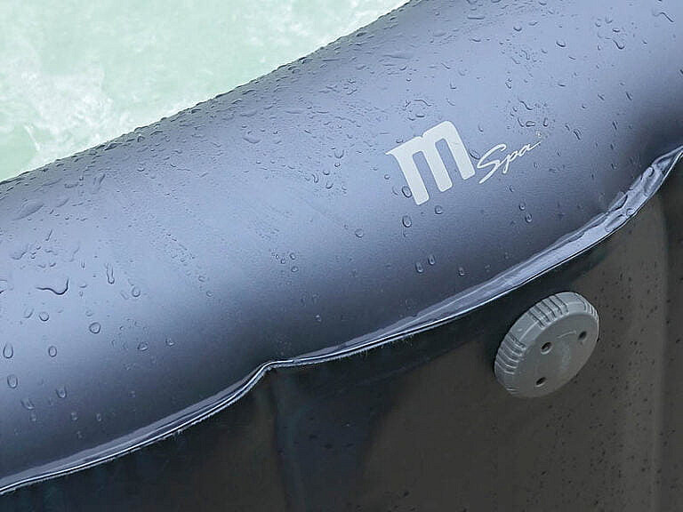 nafukovacia mobilná vírivka MSPA Carlton, kryt vírivky, nafukovací kryt, termoizolačná podložka, adaptér na záhradnú hadicu, hadica na nafukovanie, filtračná kazeta 2 ks, základňa filtračnej kazety, dávkovač chemikálií, kľúč