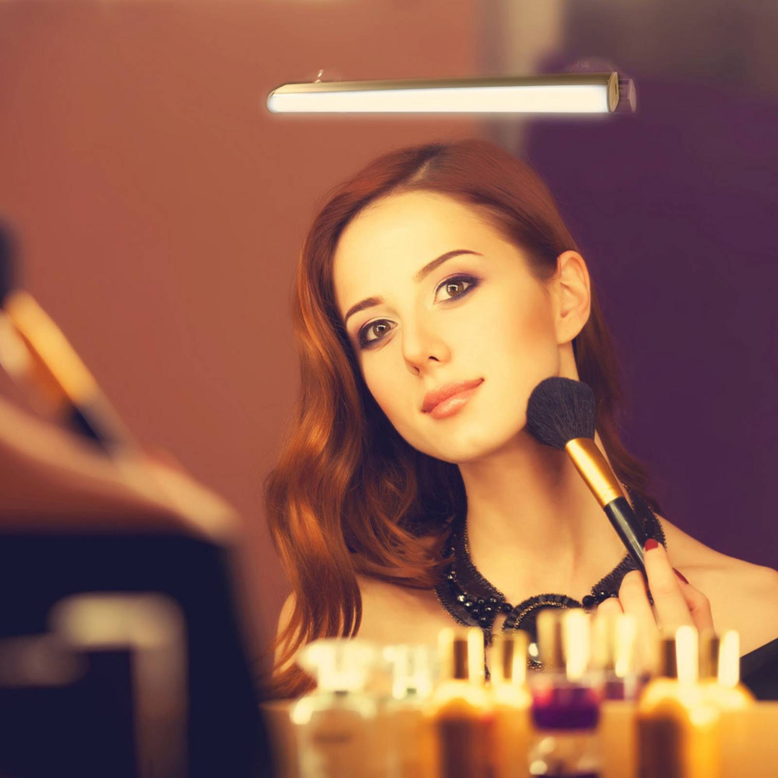 Prenosná zrkadlová LED lampa na batérie, stmievateľná a s CCT Dobré svetlo pri zrkadle na líčenie, holenie a kaderníctvo nie vždy nájdete na cestách. Pomôcť vám v tom môže batériová zrkadlová LED lampa Belle Lux DIM. Vďaka prísavkám ju možno nielen namontovať kamkoľvek, ale je aj stmievateľná a s nastaviteľnou farbou svetla – všetko sa ovláda pomocou dotykového senzora. Lampa sa nabíja cez USB (kábel je súčasťou balenia). Doba svietenia pri plne nabitej batérii je maximálne 2,5 hodiny.