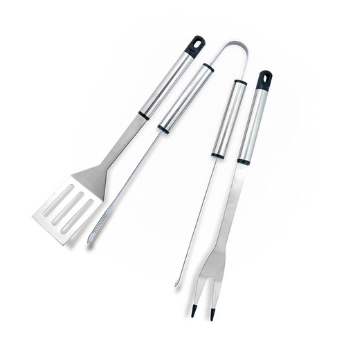 Grilovacie náradie AE176 je trojdielna sada príslušenstva, ktorá Vám dokonale poslúži pri grilovaní vynikajúcich pochúťok. V balení nájdete vidlicu, kliešte a lopatku na otáčanie. Tento príbor v dĺžke 38 cm je vyrobený z chrómovej nehrdzavejúcej ocele s prvkami čierneho plastu s praktickými…