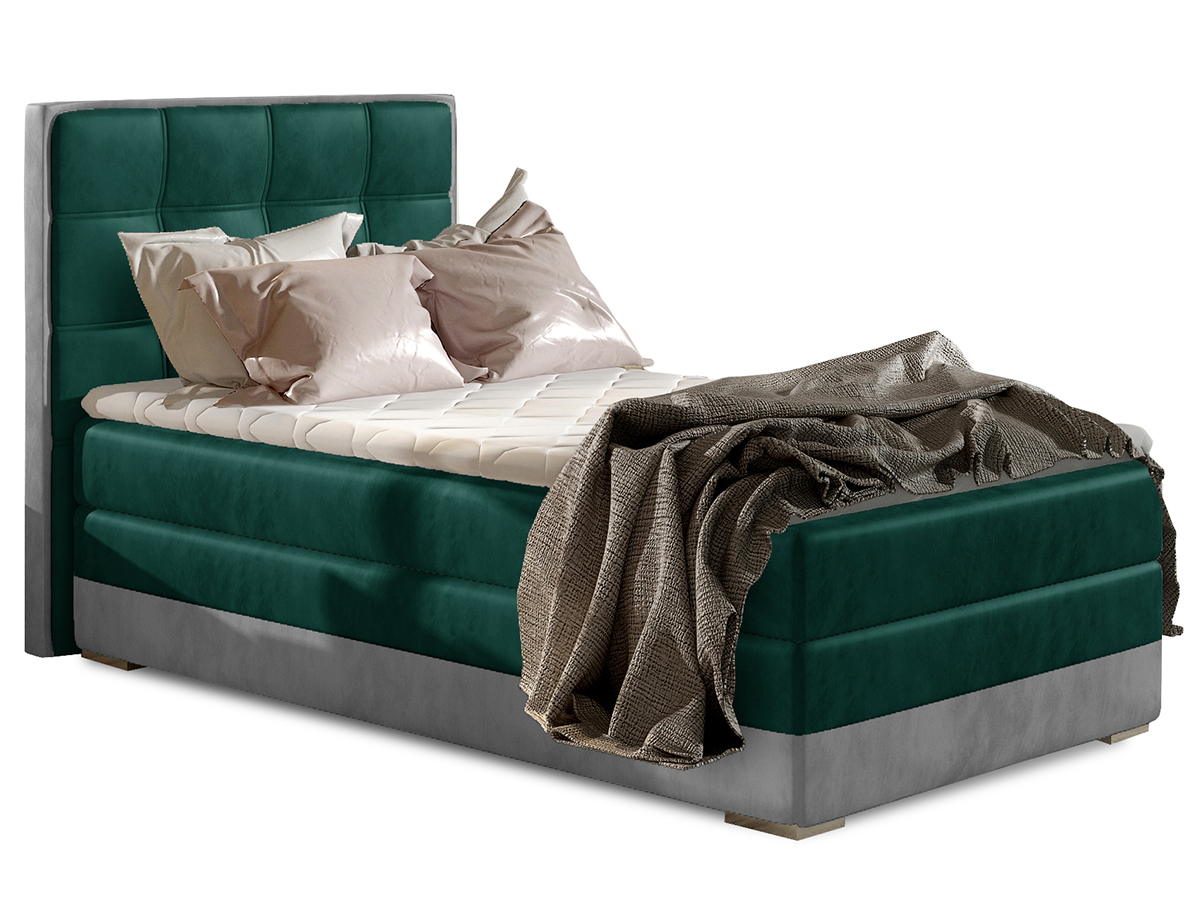 NABBI Alessandra 90 P čalúnená jednolôžková posteľ tmavozelená / svetlosivá