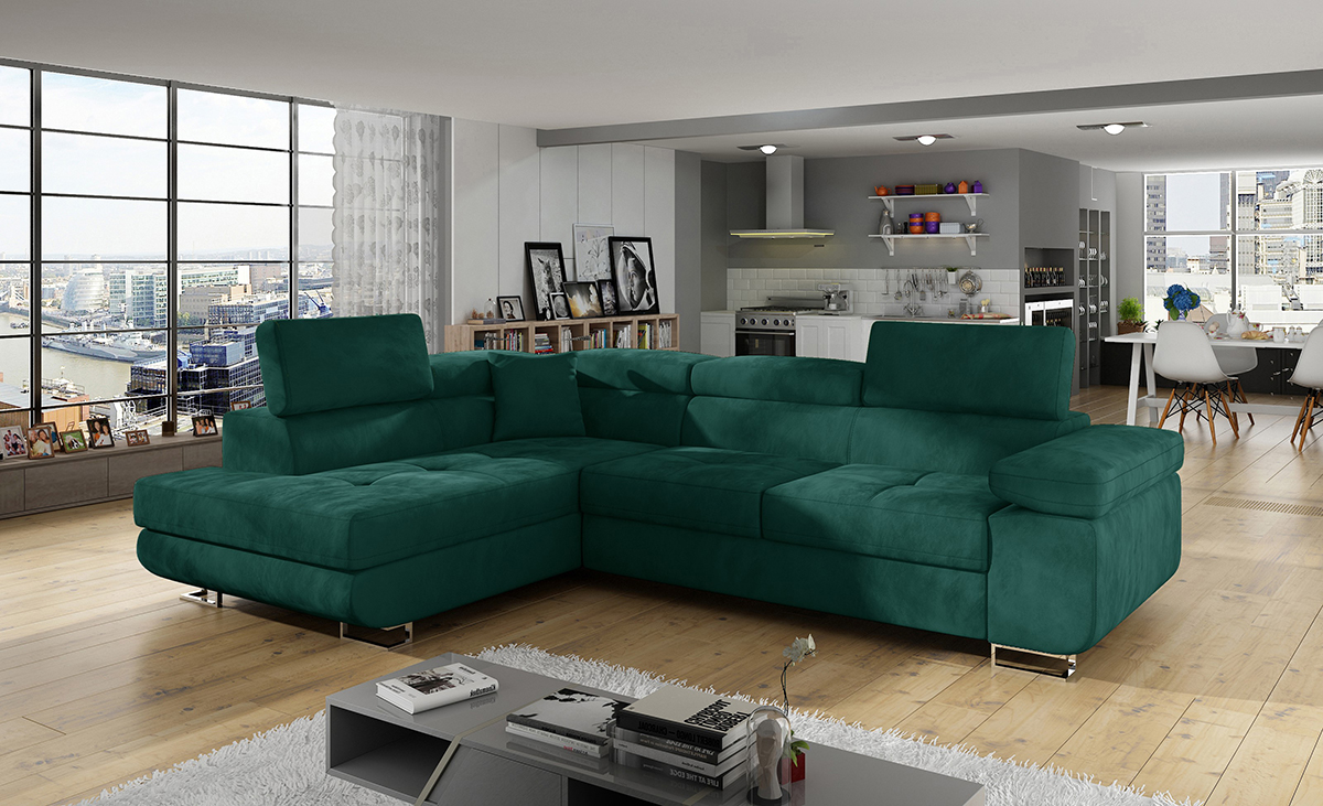 NABBI Almero L rohová sedačka s rozkladom a úložným priestorom tmavozelená