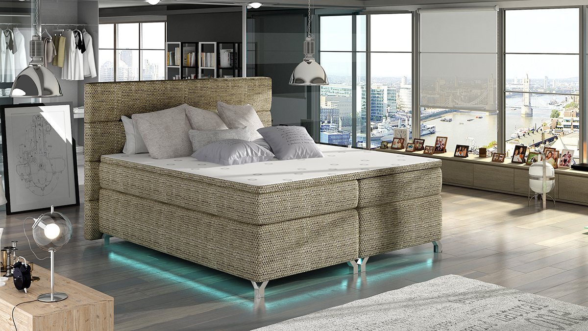 Masívna manželská posteľ AVELLINO 140 bude dominantným kúskom nábytku vo Vašej spálni. Tajomstvo pohodlia tejto boxspringovej manželskej postele je ukryté v kvalitných matracoch, z ktorých pozostáva. Matrace vysoké 20 cm s bonelovými pružinami, ktoré majú veľkú nosnosť, je možné zodvihnúť…