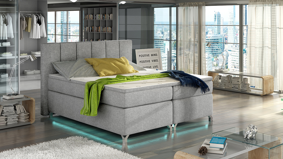 Povinným vybavením každej spálne by mala byť posteľ, ktorá bude nie len pohodlná, ale bude spĺňať aj Vaše dizajnové predstavy a bude Vašim funkčným pomocníkom. Moderná, boxspringová, manželská posteľ BARINO 180 spĺňa všetky tieto kritériá na jednotku. Jej univerzálne farebné prevedenie svetlosivá …