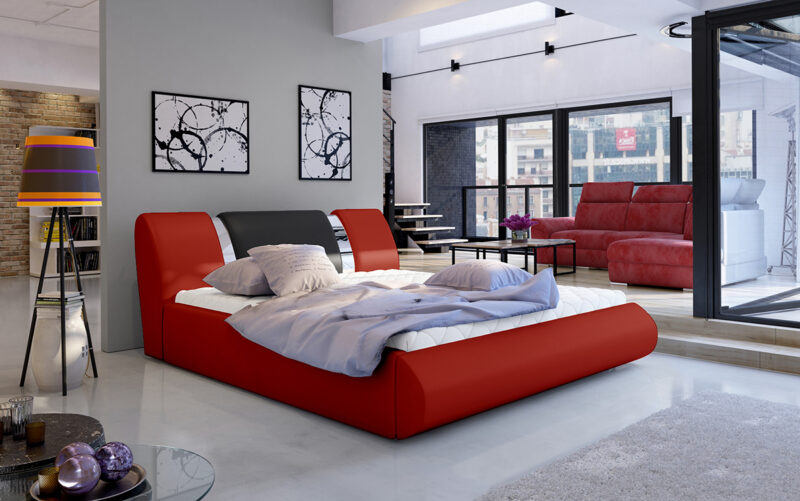 NABBI Folino 160 čalúnená manželská posteľ s roštom červená / čierna