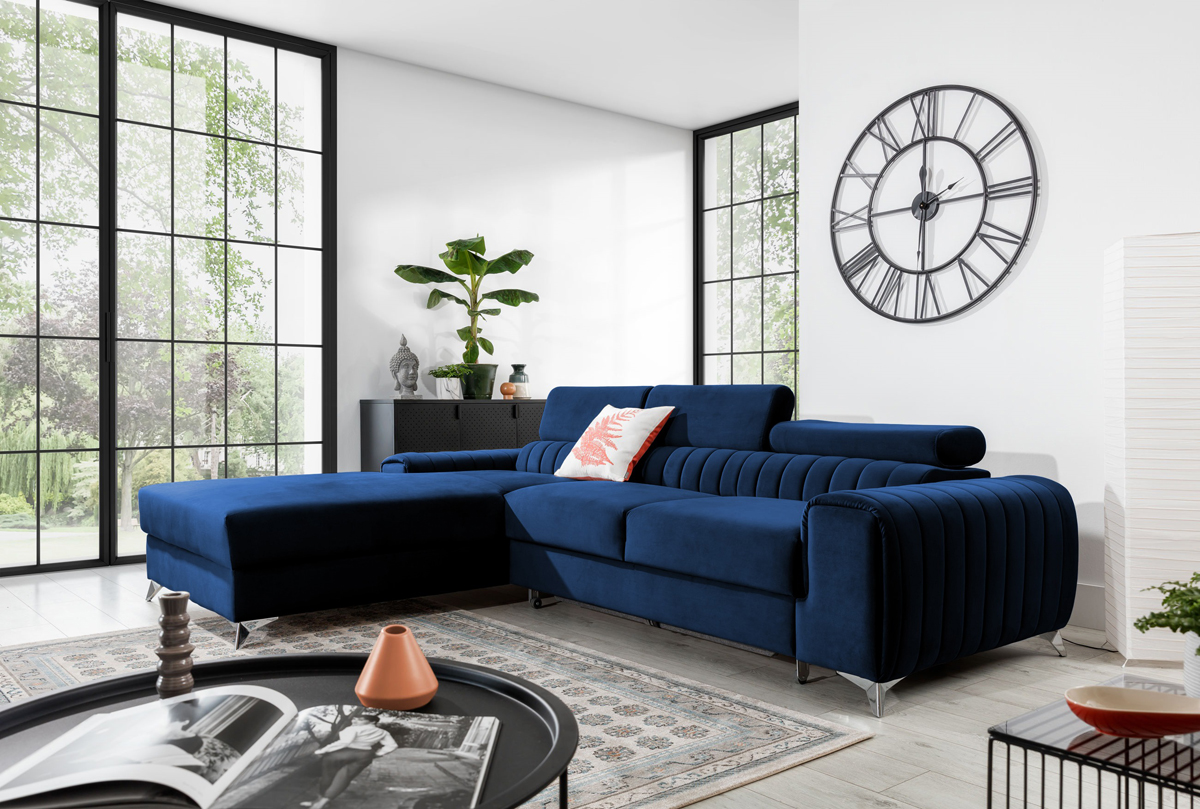 NABBI Granada L rohová sedačka s rozkladom a úložným priestorom tmavomodrá