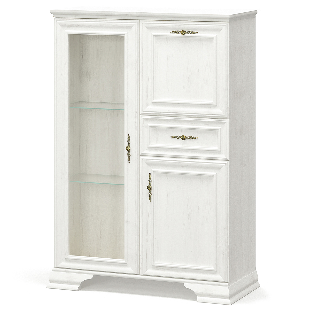 Trojdverová vitrína so zásuvkou IGINS B-1W2D1DRW si Vás získa svojou eleganciou a provensálskymi prvkami, ako sú zaujímavé ornamentové úchytky, vrchná doska ukončená ozdobnou lištou či netradičné riešenie nožičiek. Farebné prevedenie sosna Andersen je krásne, elegantné, pôsobí čisto a upokojujúco…