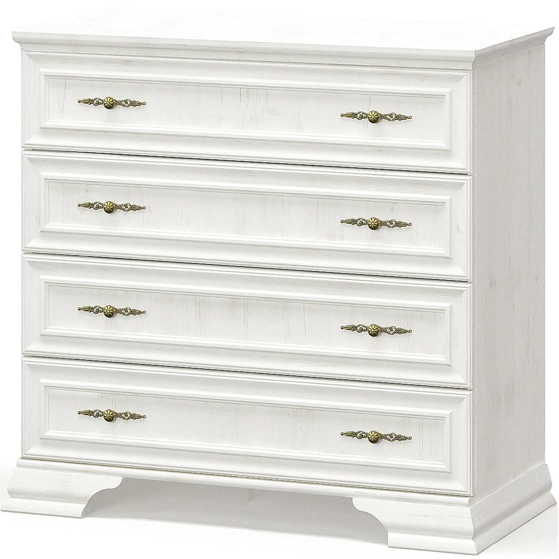 Nechajte sa očariť eleganciou zásuvkovej komody IGINS CH-4DRW s provensálskymi prvkami, ako sú zaujímavé ornamentové úchytky, vrchná doska komody ukončená ozdobnou lištou či netradičné riešenie nožičiek. Farebné prevedenie sosna Andersen je krásne, elegantné, pôsobí čisto a upokojujúco a na nábytku…